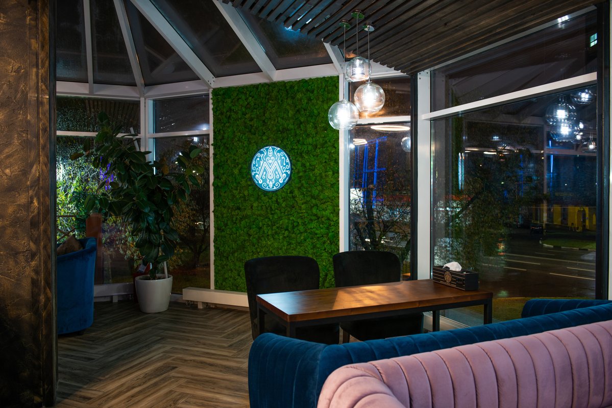 Потрясающе место, давно искал где можно отдыхать после трудовых будней...так же очень хорошее место для обедов, частенько заезжаю сюда съесть вкусный суп и выкурить потрясающий кальян!